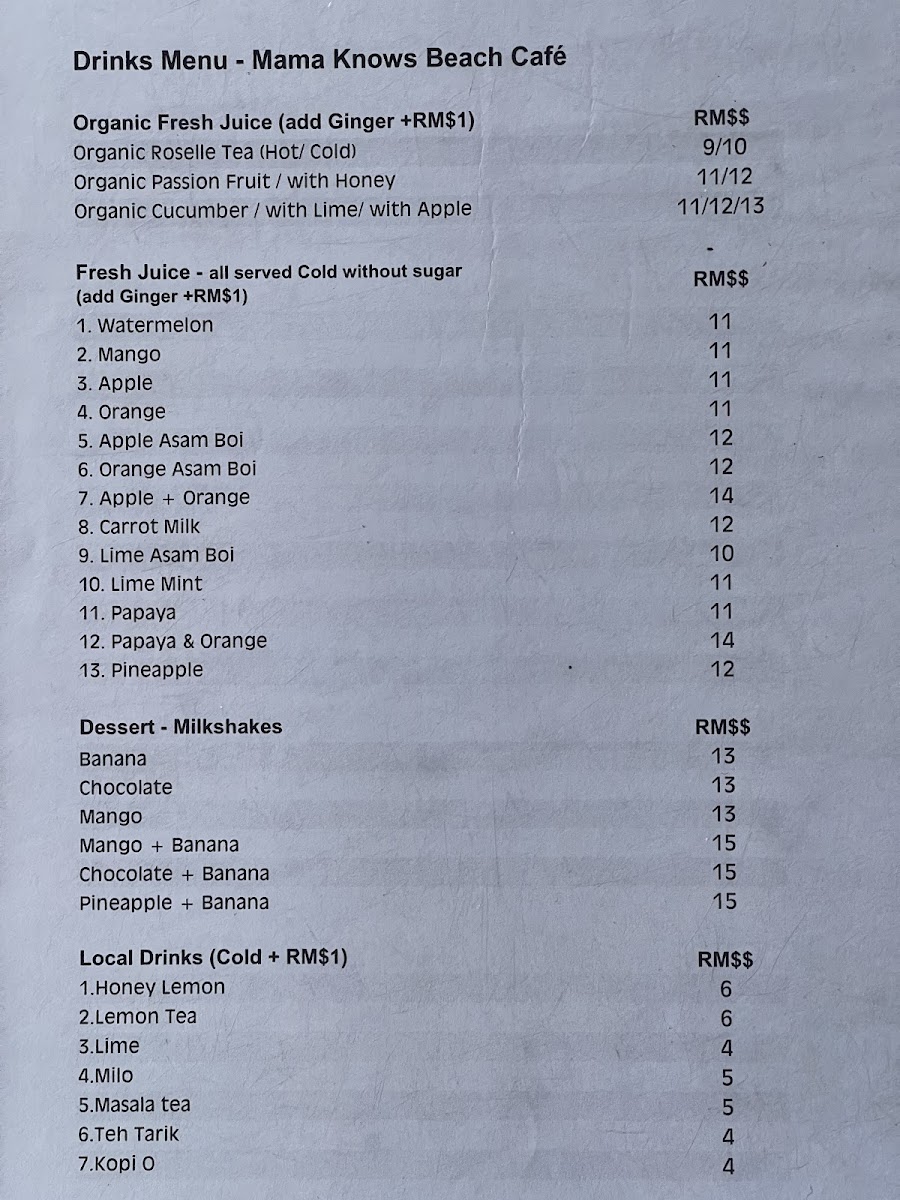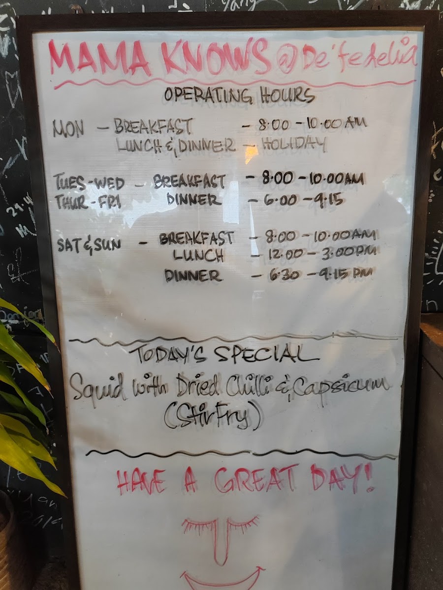 Mama Knows @ Fedelia Beach Garden Cafe Menu